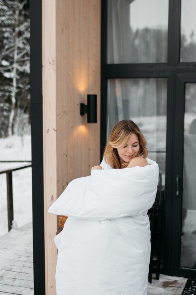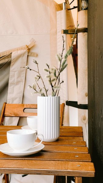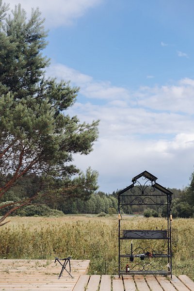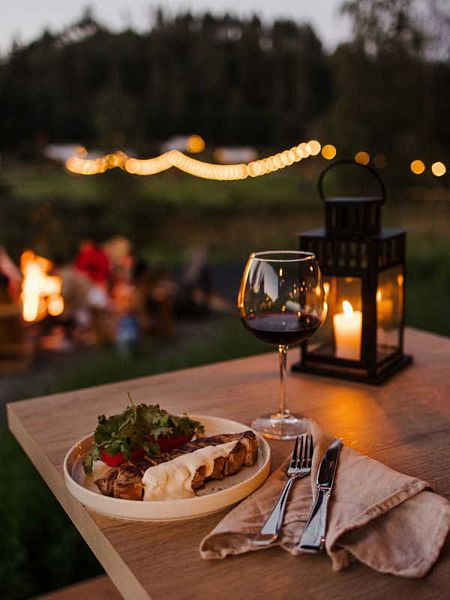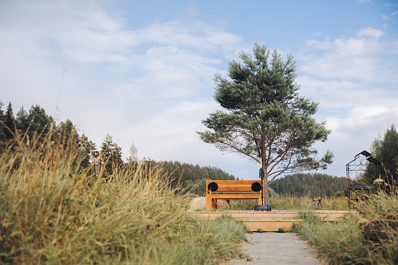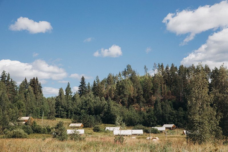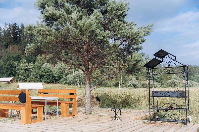 В самом шатре были теплопушка, батарея и электропростыня. В шаговой доступности два санблока с туалетами и теплым душем. В наличии кафе и вайфай, поэтому все удобства под рукой, городской житель может не паниковать. На самой территории — лес, причал и качели на холме с видом на Ладожское озеро, что еще нужно для умиротворения?