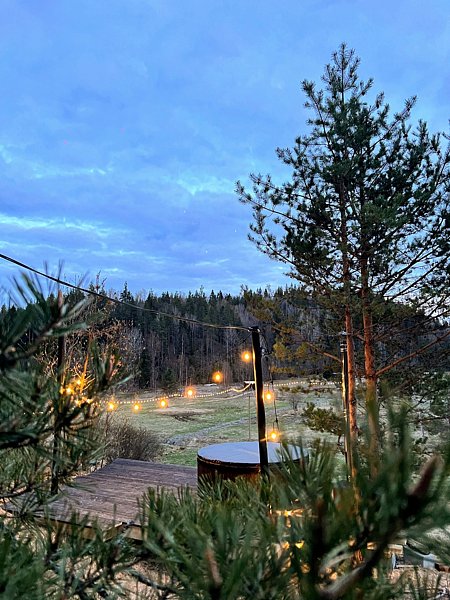 Потом мы взяли фьорд с капелью там все есть и душ и туалет ,все новое ,внутри еще камин (мы вечером зажгли было очень здорово ),так же брали купель ,нам все заранее подготовили мы просто пришли и сели наслаждаться звуками природы .Кровать кстати и там и там очень комфортная ,я спала как ребенок хотя у меня большие проблемы со сном в новых местах
