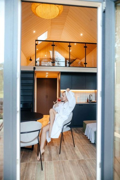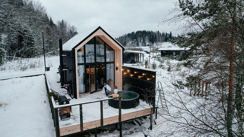Полноценные дома со своей купелью, камином и зоной барбекю на большой террасе (16м2). ФЬОРД - это 30 квадратных метров стильного пространства с видом на карельские сосны и скалы.