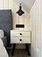 Спальня: кровать двуспальная (размер 180х200), матрас ортопедический, с независимыми пружинами, толщина 15 см, диван-кровать (размер 80х200), подушки — 2 шт (50х70), покрывало, белое постельное белье премиум качества, светильник напольный, прикроватный коврик.