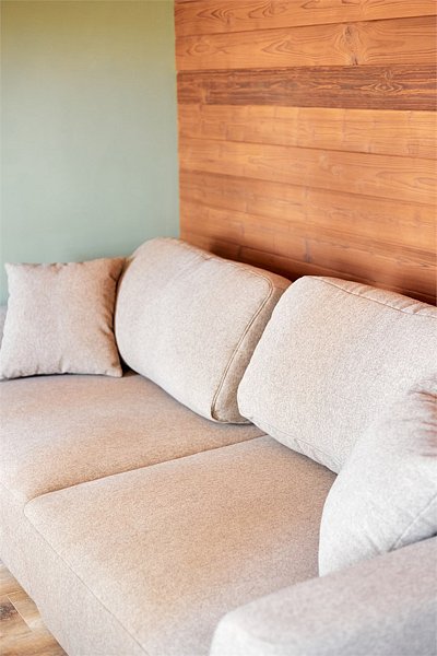 угловой диван-кровать, две односпальные или большая двуспальная кровать, телевизор с плоским экраном, душевая кабина, раковина, санузел, сауна, теплый пол, гардеробная, вешалки, стулья, окна от пола до потолка, стол, шкаф для одежды, обеденный стол, свч-печь, холодильник, кондиционер, плита для приготовления пищи. Терраса. Вид на озеро/вид на лес. Отдельный вход в номерУслуги и удобства