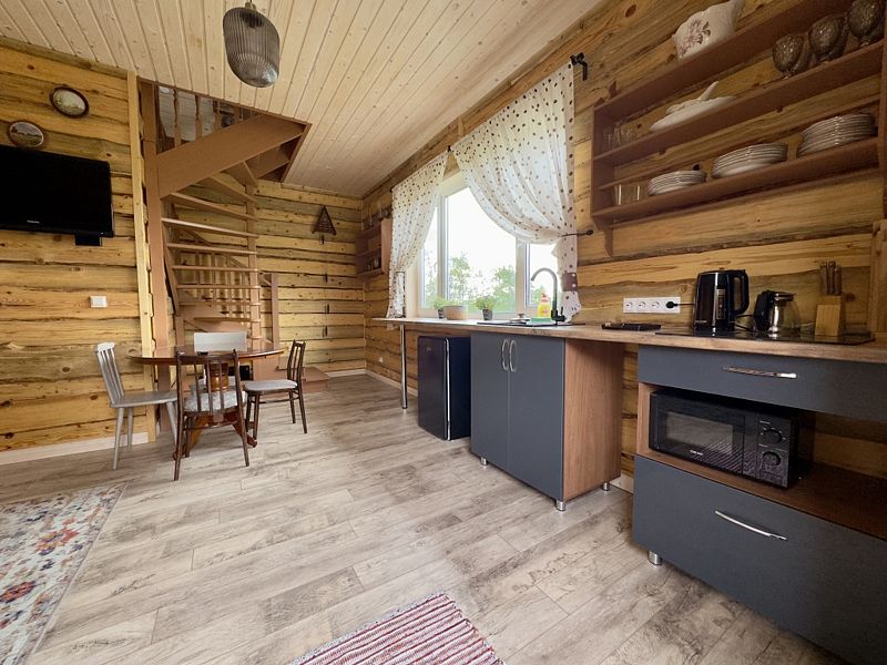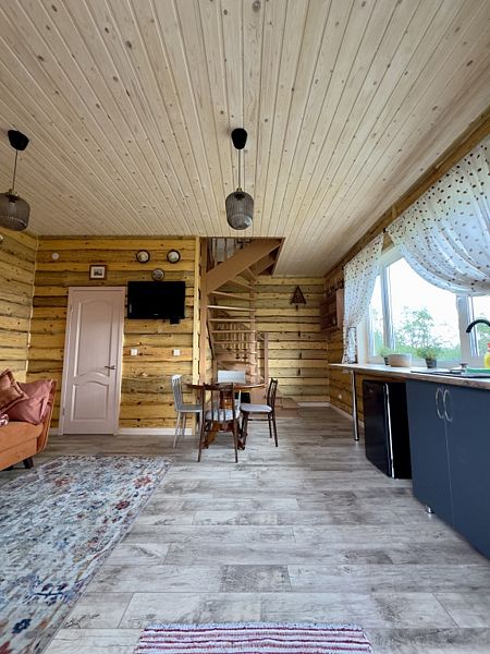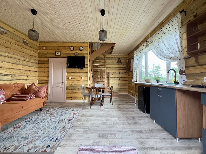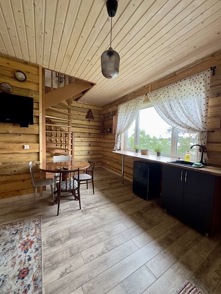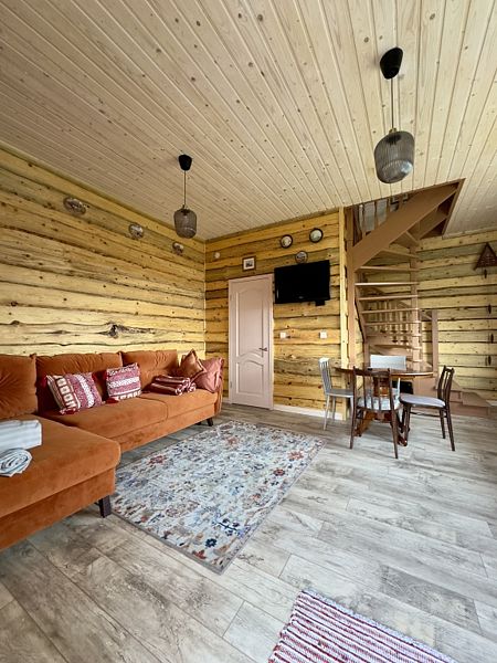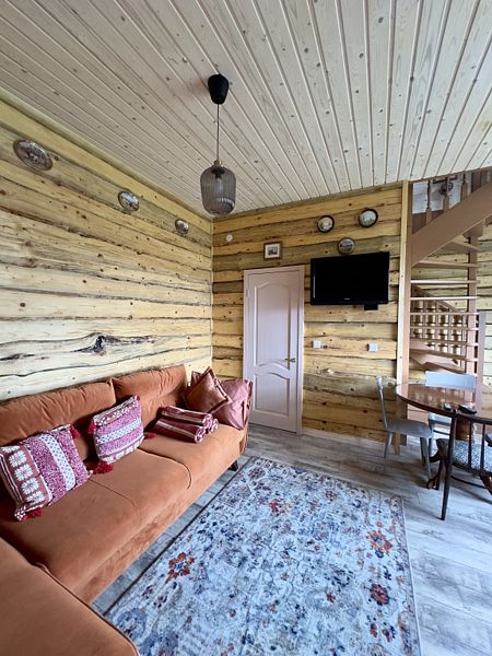 Двухуровневый номер для 4 гостей. Имеется вся бытовая техника, два телевизора, все удобства, ванная комната. Есть беседка с мангалом.