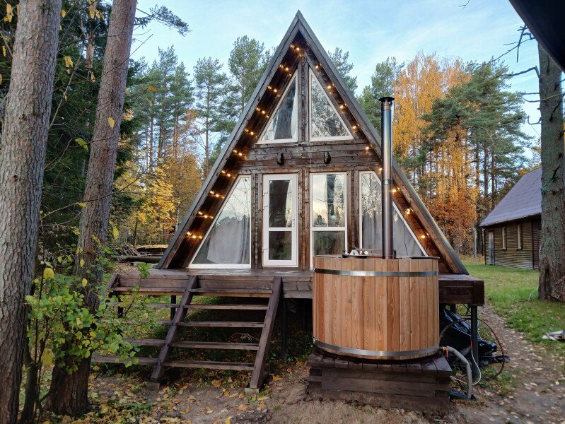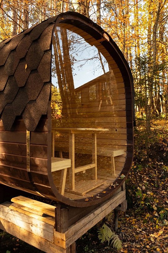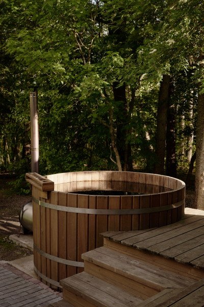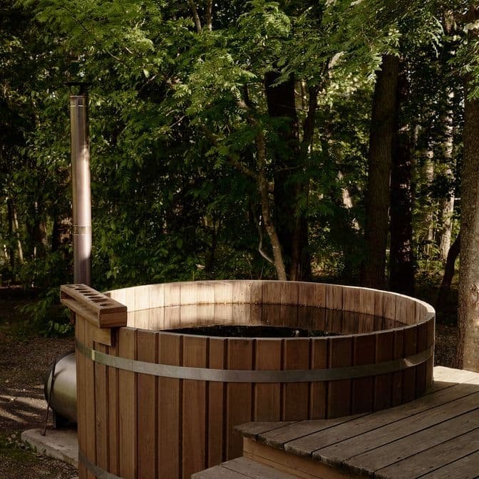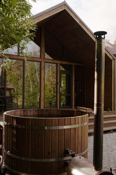 Горячая купель из настоящей Ангарской Лиственницы (доступна для A-Frame Maxi, A-Frame Classic & Barn House).