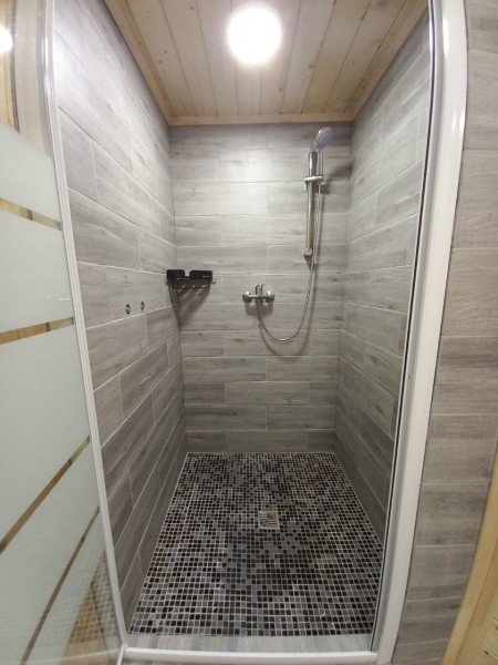 Полноценная кухня, санузел с душем, подогрев полов по всей площади, терраса, мангал, собственный плавучий причал.