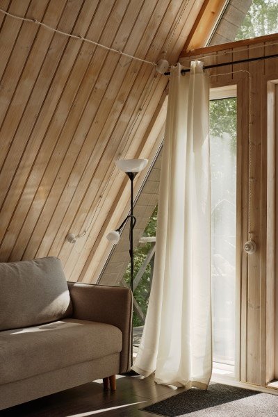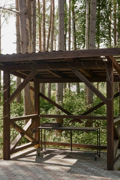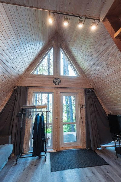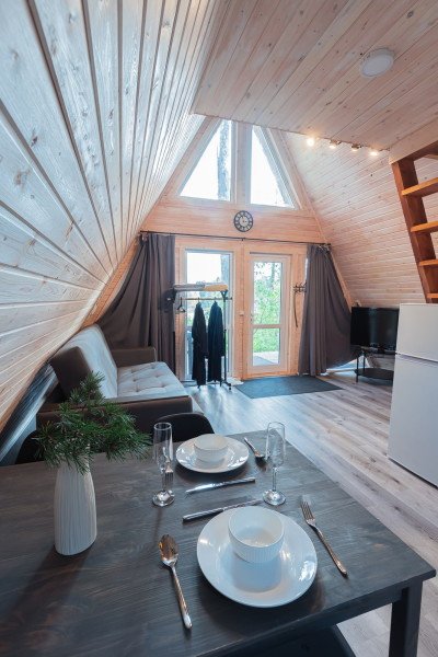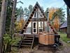 А-образный дом с купелью из Ангарской лиственницы (оплачивается дополнительно) в живописном месте, окруженном сосновым бором с видом на реку Ууксу.