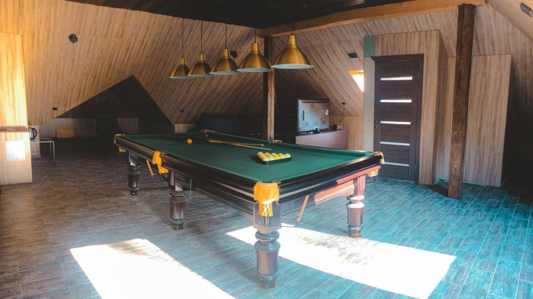 Единственный гостевой дом в Приладожье с бильярдной комнатой площадью 100м2, обустроенной на 3 этаже, а так же домашним кинотеатром с мультимедийной системой Sonos, xBox (третий этаж оплачивается дополнительно).Полностью оборудованная кухня, (посудомоечная машинка, холодильник side-by-side, СВЧ печь, духовой шкаф, электроплита, чайник, тостер и прочее).