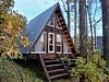 Классический A-Frame размерами 6х6 с двухметровой террасой. Дом с видом на реку Уксунйоки в окружении соснового бора.