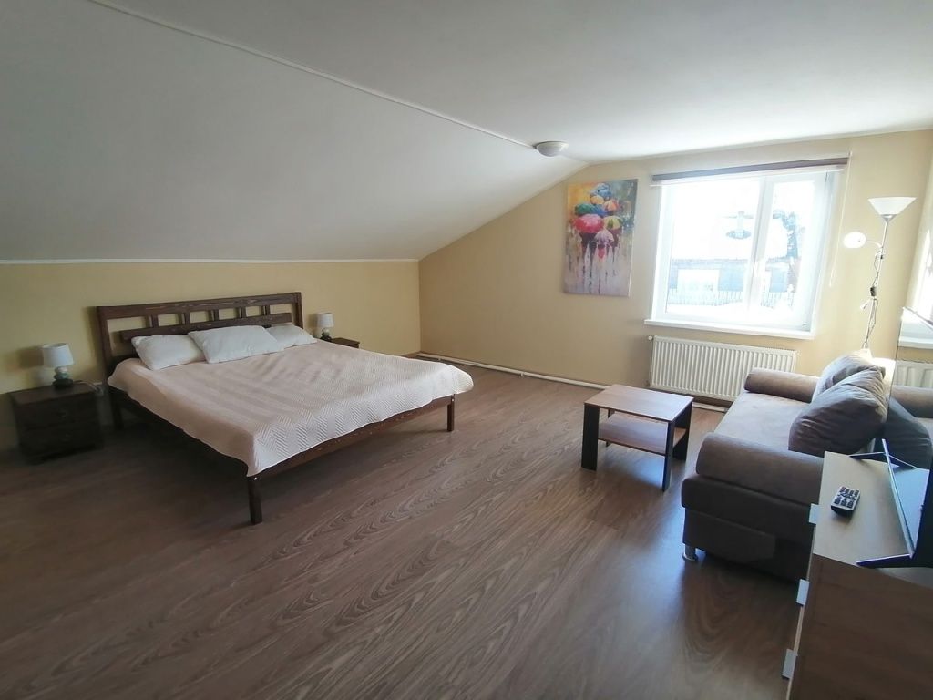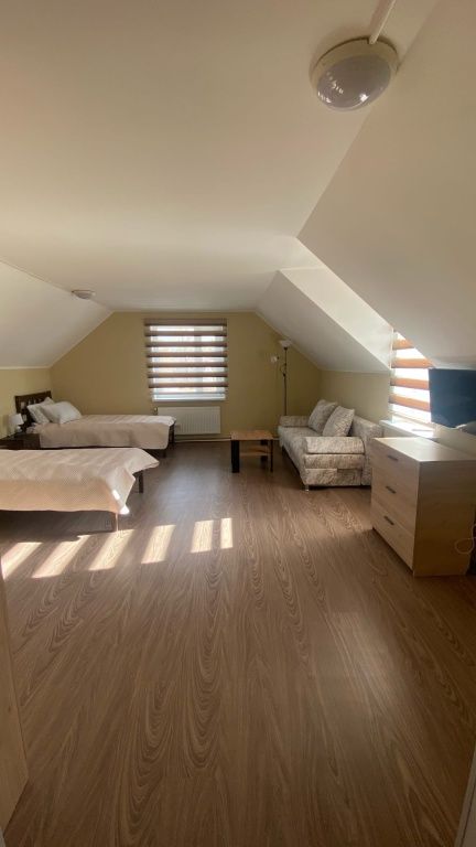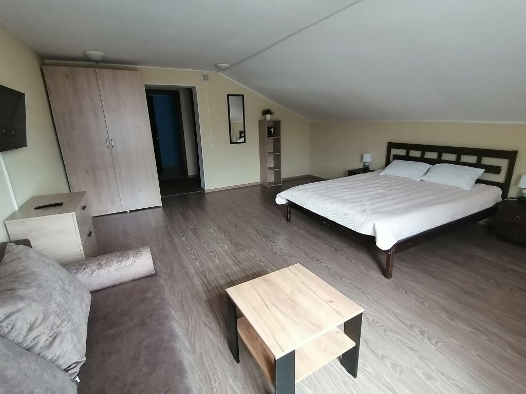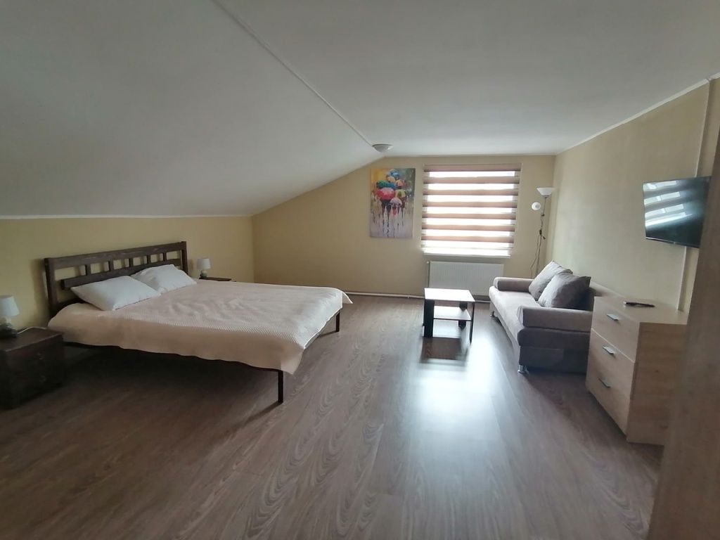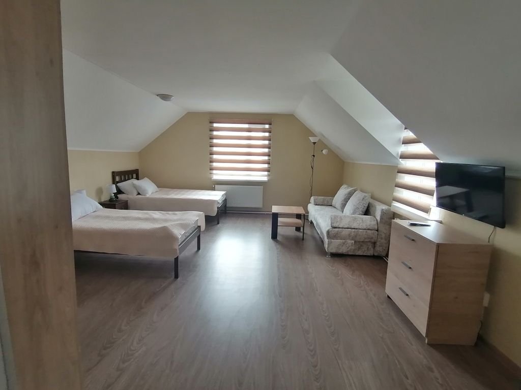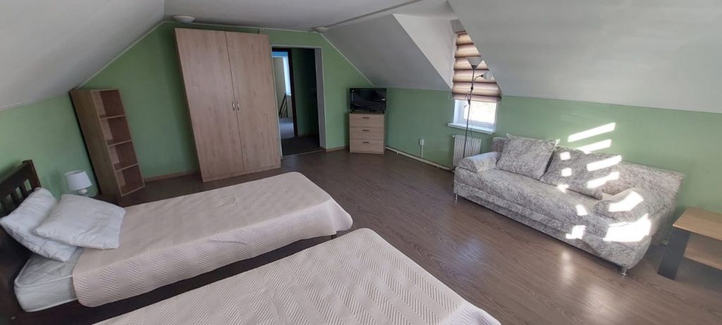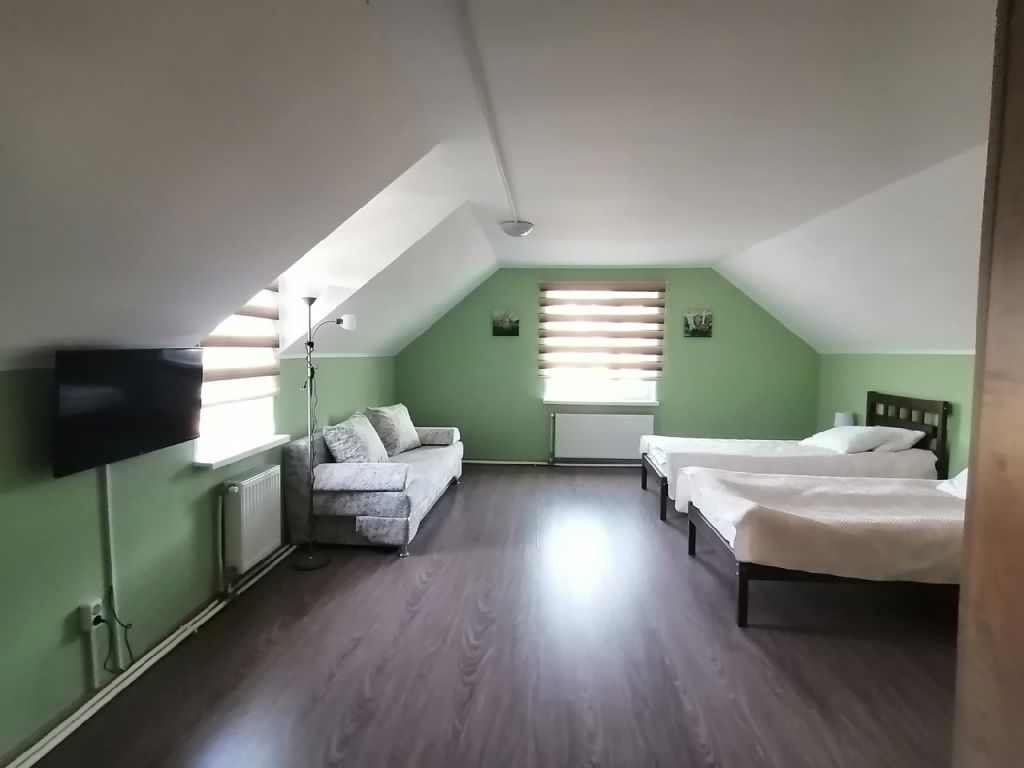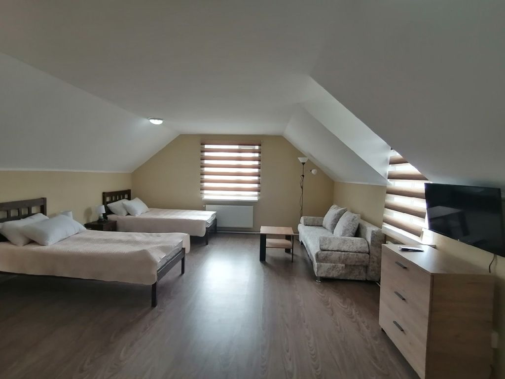 Семейный номер с 2-спальной кроватью и дополнительным местом (раскладной 2-местный диван). Каждый номер оборудован санузлом с душевой кабиной.
