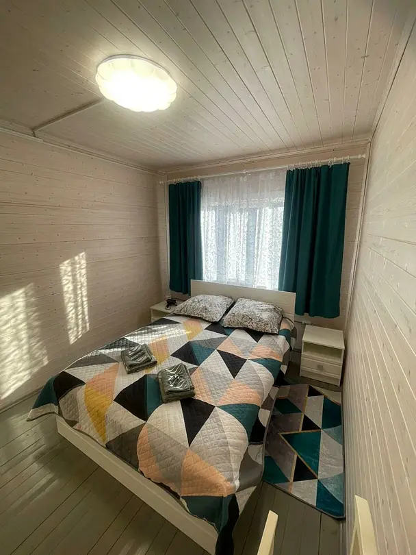 3-комнатный дом. Спальных мест: 2+2+2 (две комнаты с двуспальными кроватями, кухня-гостиная с диваном).