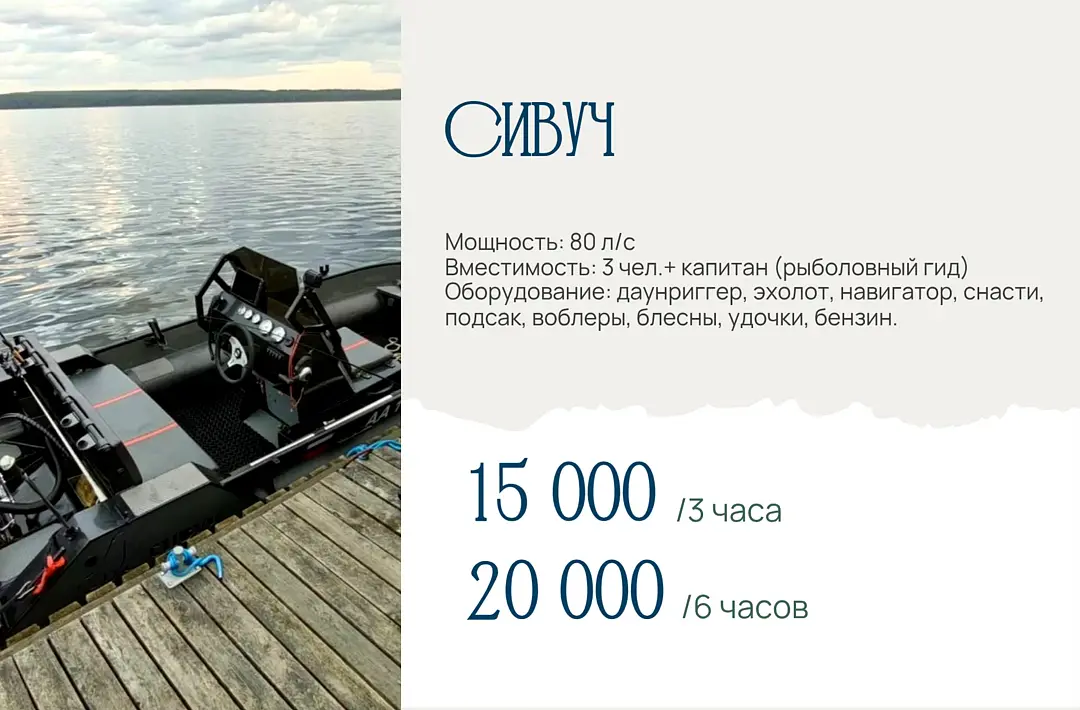 Читать полностьюБаза отдыха «Рыбацкий причал» предлагает увлекательную троллинговую рыбалку на Онежском озере. В распоряжении гостей — скоростные катера мощностью от 80 до 300 лошадиных сил, полностью укомплектованные профессиональным рыболовным оборудованием. Опытные капитаны, являющиеся также рыболовными гидами, проведут инструктаж и поделятся эффективными приёмами для успешной ловли трофеев.