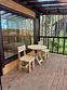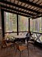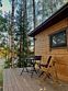 В доме: удобства (душ, туалет), мини-кухня, двуспальная кровать, шкаф, панорамное окно с видом на лес и озеро, раскладной диван, терраса со столиком и креслами. Также для Вас — беседки, мангалы и все дополнительные услуги базы отдыха!