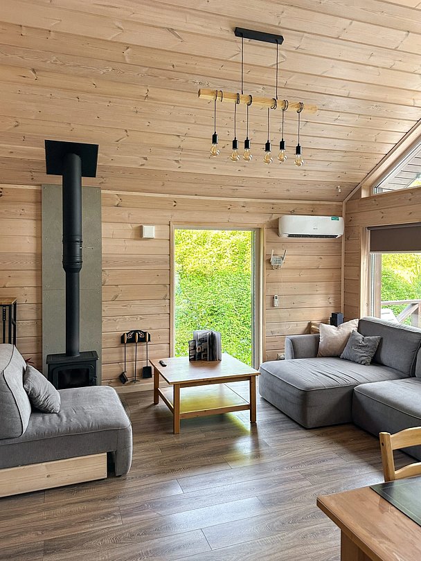 На ухоженной территории «Scandi house» находятся автомобильная парковка, зона для мангала, пруд и современная детская площадка. Кроме того, гости могут расслабиться в большом чан для парения, где для них заранее подготовлен щедрый запас дров, что гарантирует беззаботный отдых под открытым небом.