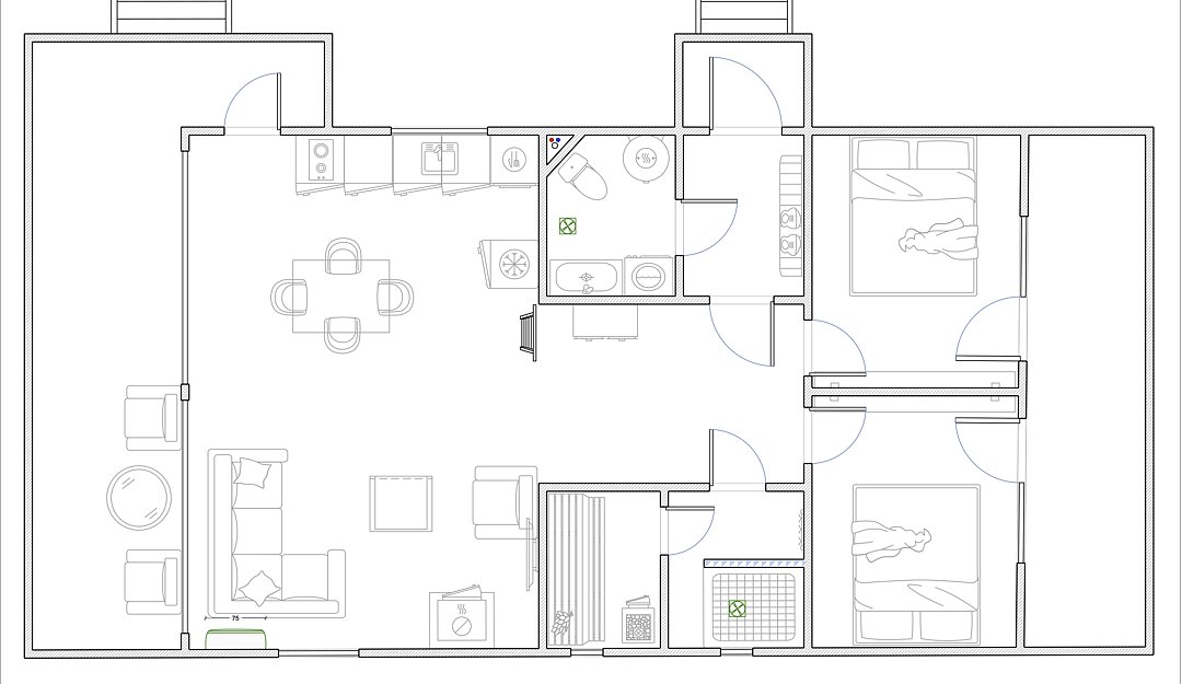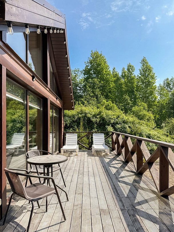 Гостей ждет современное оснащение: полностью оборудованная кухня с посудомоечной машиной и микроволновкой, стиральная машина, электрическая сауна, телевизор и дровяной камин для создания неповторимой атмосферы уюта. Высокоскоростной Wi-Fi и кондиционер позволят оставаться в курсе событий, а теплый пол добавит комфорта в прохладные вечера. Две летние террасы станут отличным местом для наслаждения природой в любое время года.