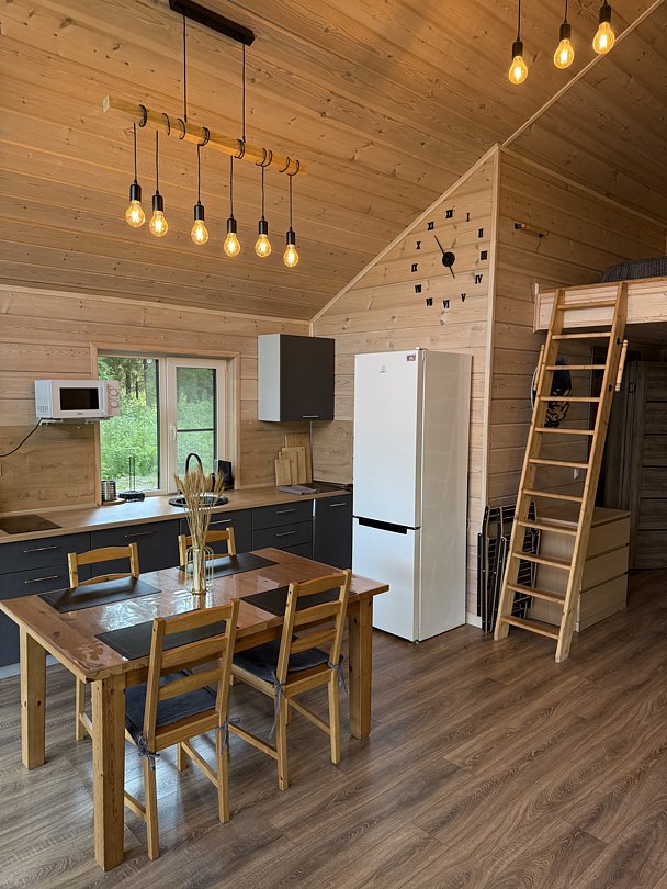 Частный дом «Scandi house» — это идеальное место для тех, кто ищет гармонию между комфортом и природой. Уютный домик в скандинавском стиле предлагает восемь спальных мест, среди которых две спальни с двуспальными кроватями, просторная гостиная с большим диваном и уютная зона отдыха на втором этаже с удобным матрасом. Премиум-матрасы обеспечат вам качественный сон и восстановление сил после насыщенного дня.