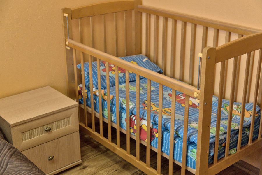 В номере имеется: мягкая мебель (кресло-кровать 2 штуки, раскладной двуспальный спальный диван), детская кроватка, детский уголок, холодильник, ТВ, WI-FI, электрический чайник, набор посуды, фен.