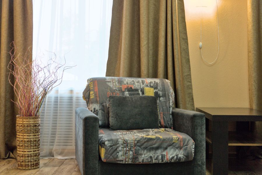В номере имеется: мягкая мебель, холодильник, ТВ, WI-FI , кофеварка, электрический чайник, фен.