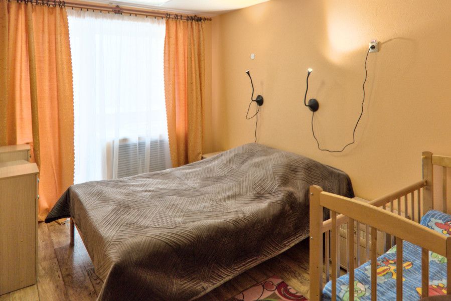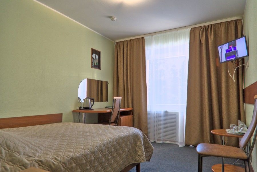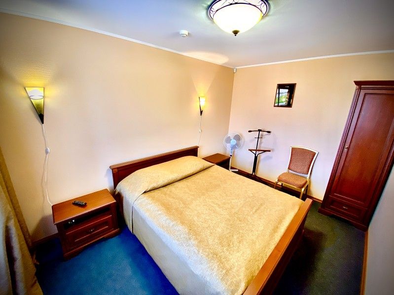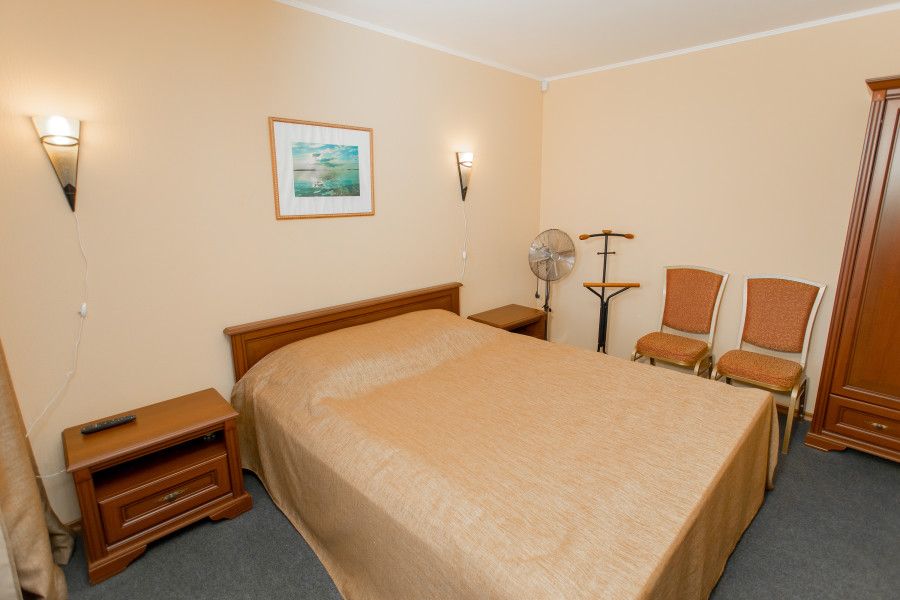 Однокомнатный номер: комната, ванная комната с душевой кабиной. В номере имеется двухспальная кровать, кресло-кровать, фен, чайник, посуда.
