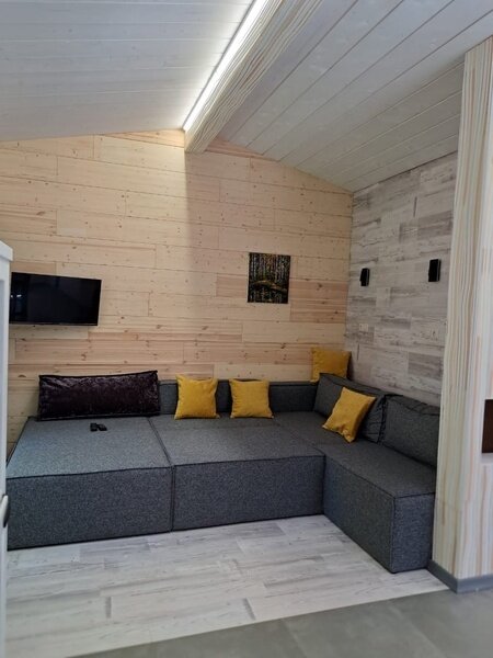 На 1 этаже расположены гостиная с удобным диваном и спальня с удобным раскладывающимися диваном.