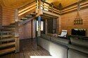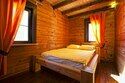 В коттедже есть гостиная с удобными креслами, спутниковым телевидением, обеденным столом и настоящей русской печкой, над которой расположено уютное спальное место. Кухонная зона с необходимой посудой. 2 спальни с 2-х спальными кроватями и комодами. Сан. узел с душевой кабиной. Балкон со столом и стульями, где можно уединиться и попить горячего чаю.