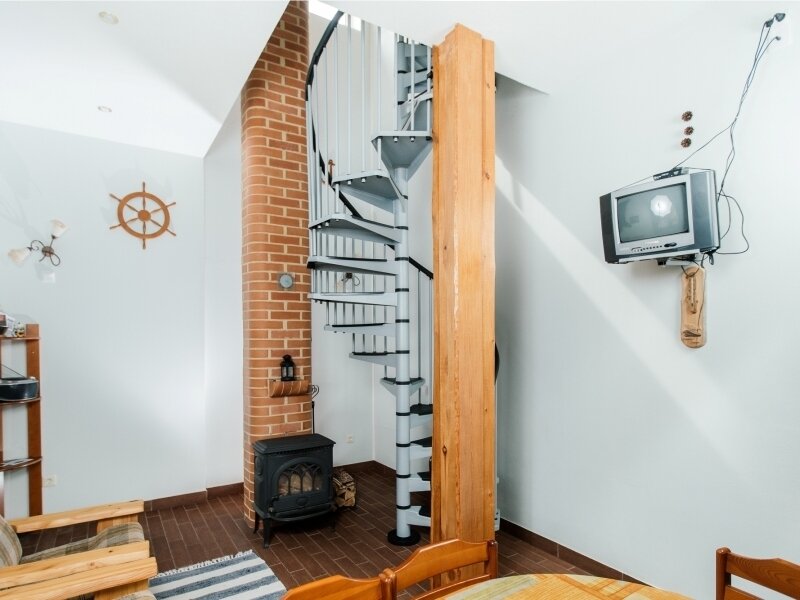 Из минусов — неудобная лестница на второй этаж, колоссальная слышимость, очень мало места и нет нормального шкафа.