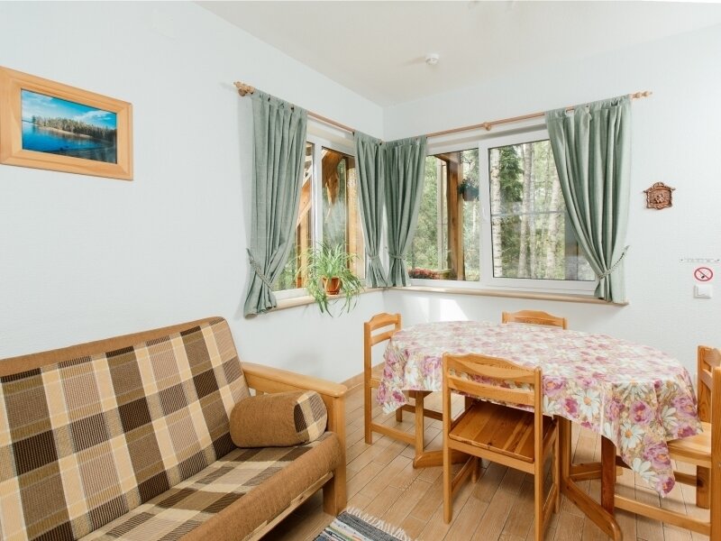 Путешествие с семьейОтличная база отдыха!Прекрасное место для отдыха. Отлично все в этом месте. Мы жили тут 4 дня, совсем не хотели уезжать. Очень чисто в домике, есть все для комфортного проживания. Есть посуда, вся нужная техника на кухне. Там идеально все. 2 этажа и они все ваши. 2 дивана и большая кровать, 2 туалета, большая ванна, обеденная зона. Все до мелочей продумано. Камин...он шикарен, дрова входят в стоимость дома. Очень ответственные и внимательные администраторы. Баня просто шикарная, чисто очень. Территория очень атмосферная. Это место которое вы обязаны посетить, а мы хотим ещё не раз туда вернуться. Природа там красивая. До города не долго ехать на такси, можно и на автобусе. Спасибо за такое шикарное место.