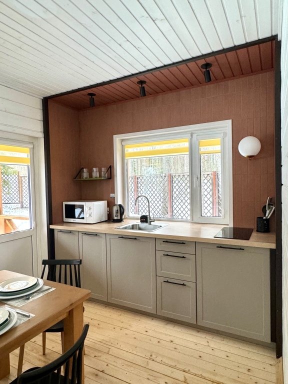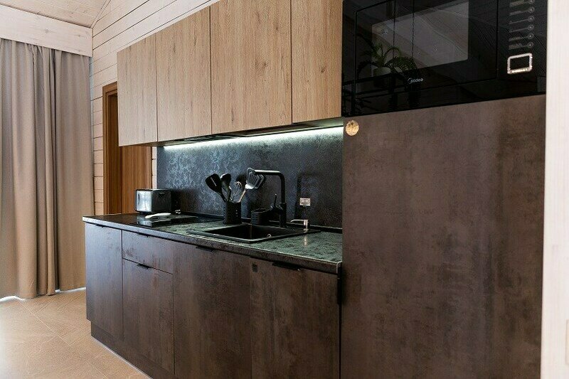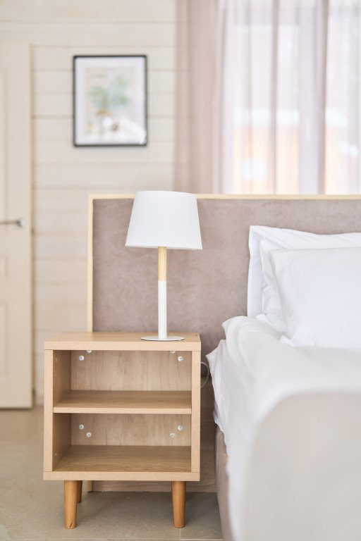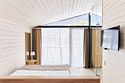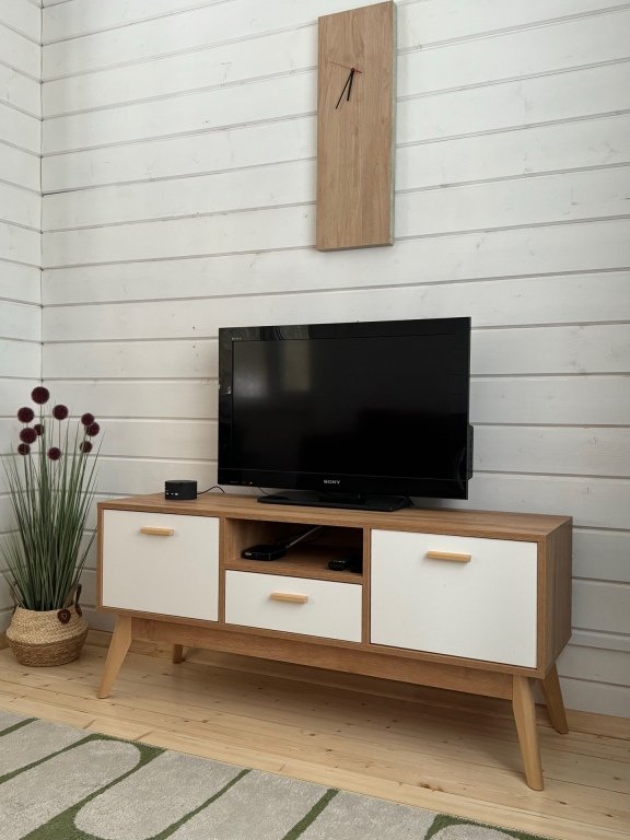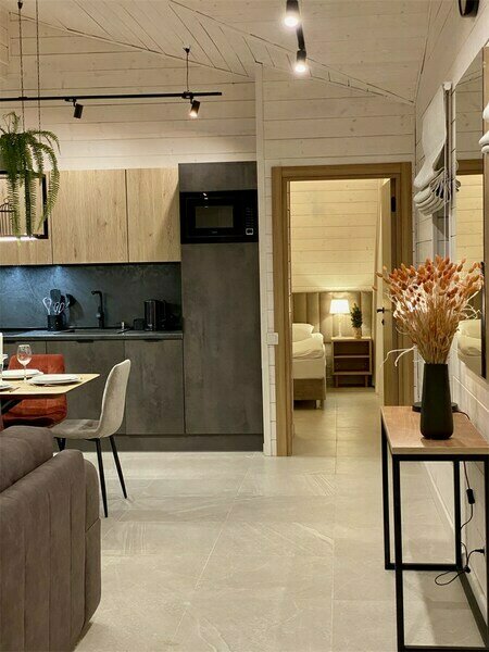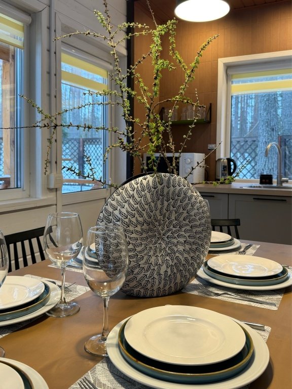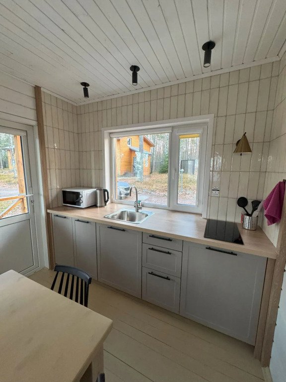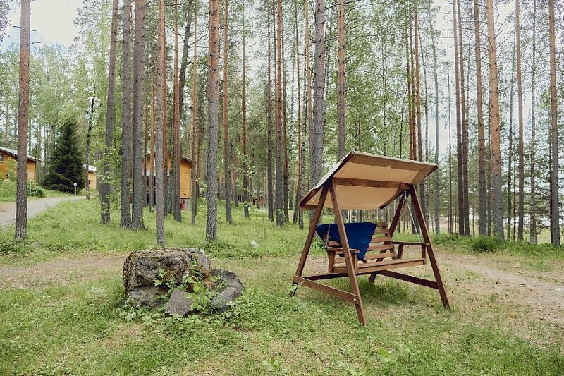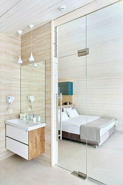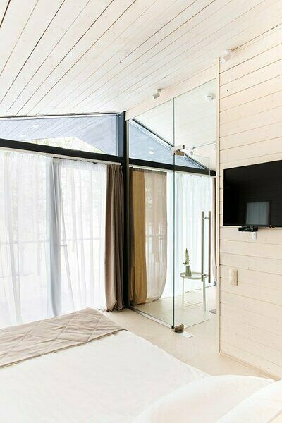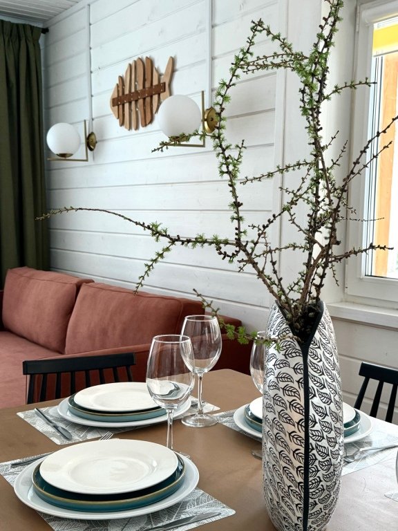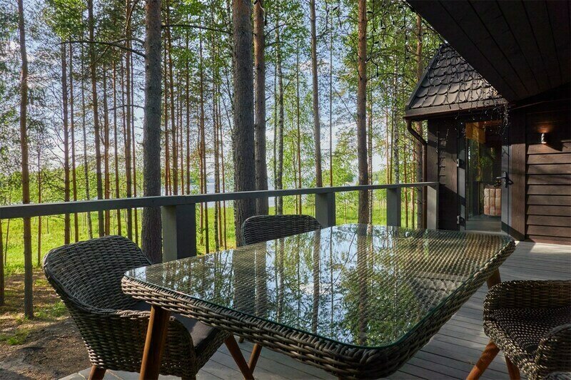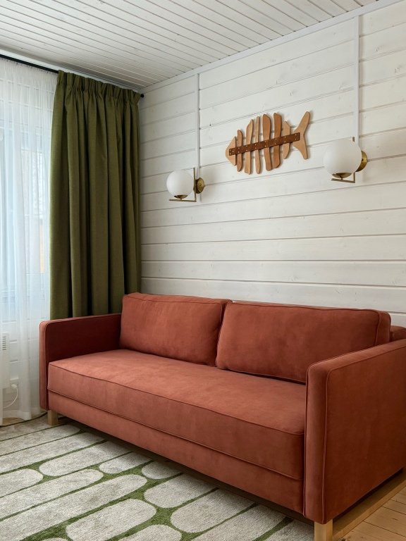 Номер в гостинице точно как на фотографиях в интернете. Уютно. Когда только заходишь, ощущается приятный запах дерева, а на территории самой базы пахнет лесом. Всё очень чисто, аккуратно, красивый вид из окна!