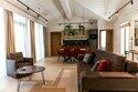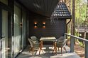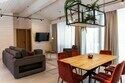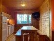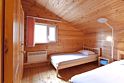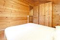 Просторное семейное шале в лесу с гостиной и двумя спальнями с двуспальными кроватями.