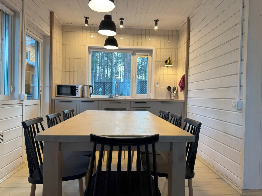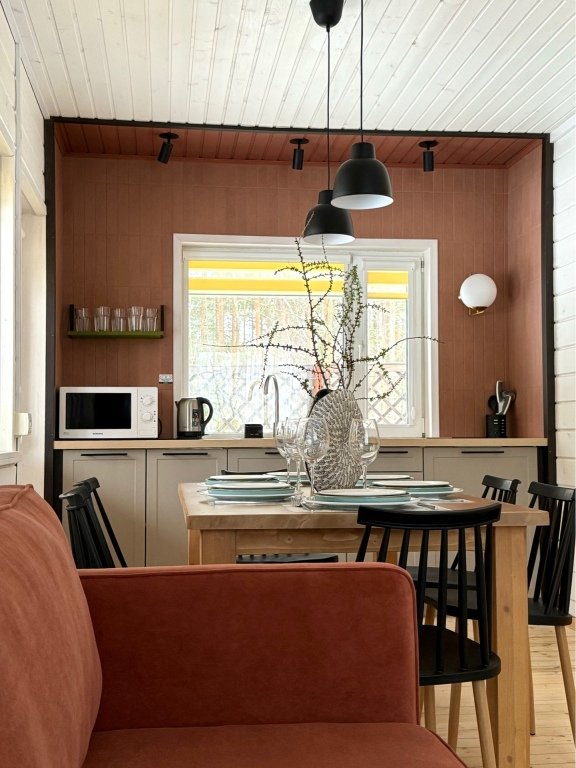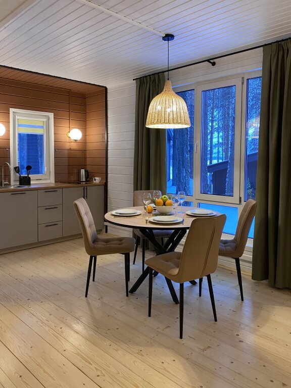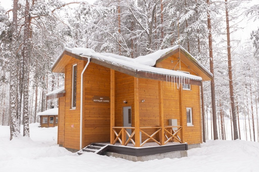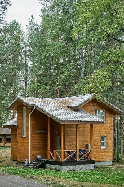 Двухэтажный четырехместный коттедж расположен в нескольких метрах от берега озера Сундозеро, входящего в систему реки Суна, и соснового леса. Из окон коттеджа открывается живописный вид на Сундозеро. Коттедж включает в себя: