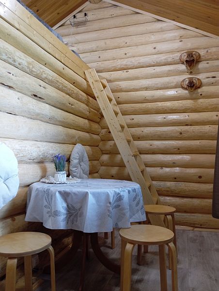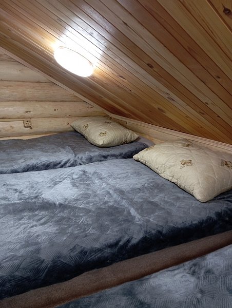 В доме кухня; санузел, 1 комната и кровать-чердак, т.е двухэтажная конструкция, на 2 этаже которой размещаются 4 спальных места: