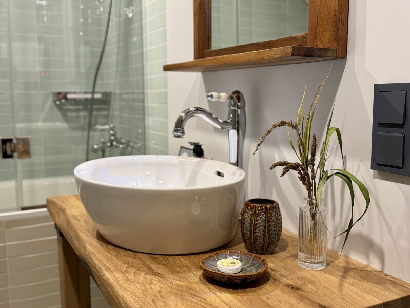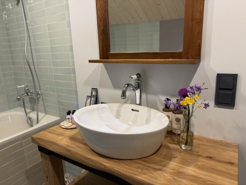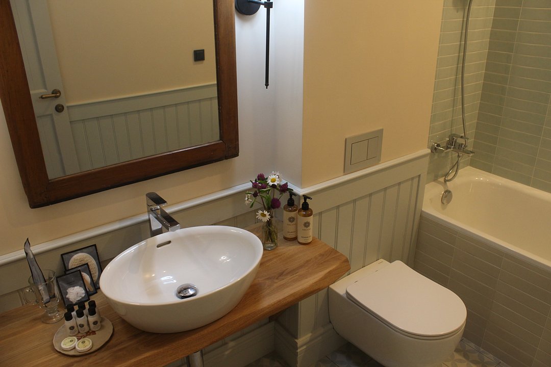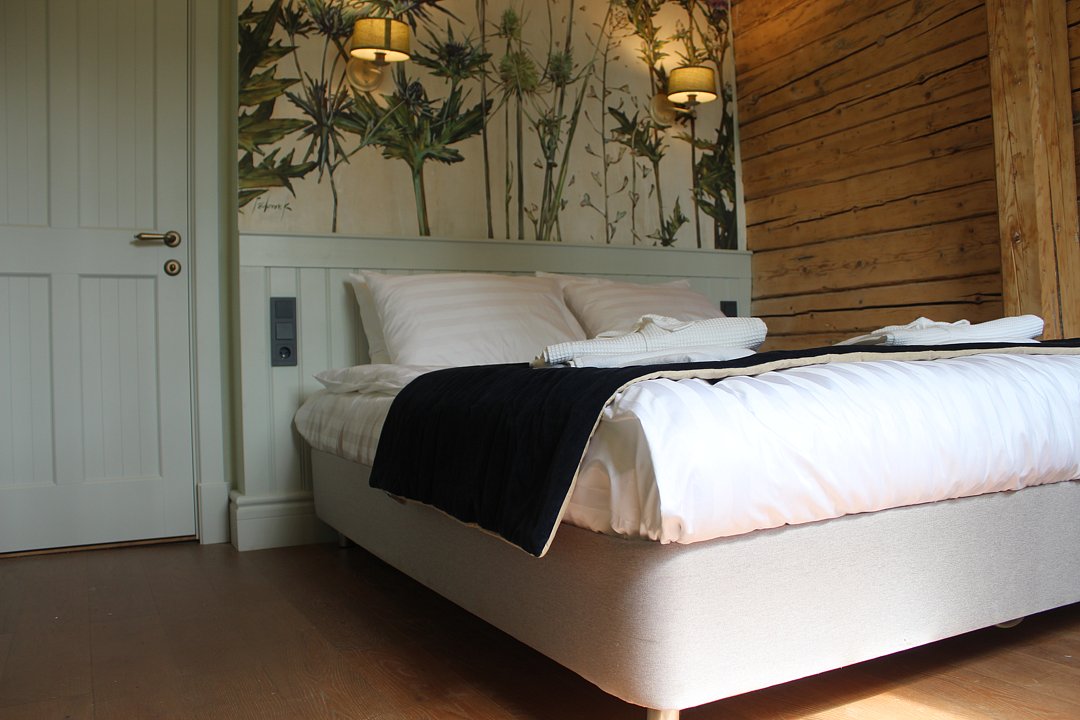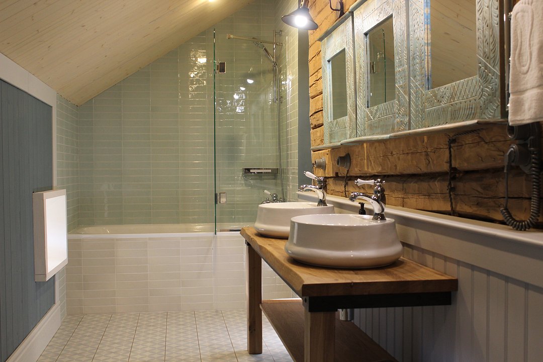 В комнате площадью 20 кв. м расположена кровать с ортопедическим матрасом 160х200 см и удобное рабочее место у широкого окна с видом на вековой лес. В правом крыле номера устроена огромная ванная комната площадью 11 кв. м, на противоположной стороне – оригинальная детская спальня-игровая и гардероб.
