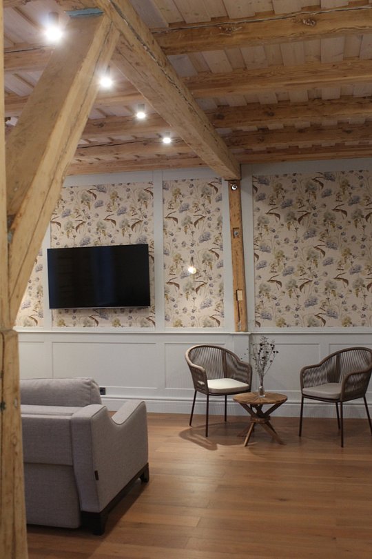 Трехкомнатный номер коттеджа, располагается на первом этаже здания. Две изолированные спальни гостиная с собственным камином, мягкой мебелью и удобным рабочим местом.