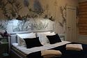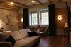 Интерьер комнат выполнен из натуральных деревянных панелей и роскошной ткани.