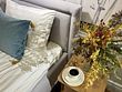 Интерьер комнаты выполнен из натуральных деревянных панелей и роскошной ткани.