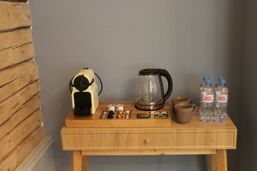 Для гостей Эко-лоджей завтрак подается в домик, овсяная каша и яичница в виде заготовок для того, чтобы приготовить самим. У вас в номере или домике есть все для того, чтобы приготовить чай и кофе.