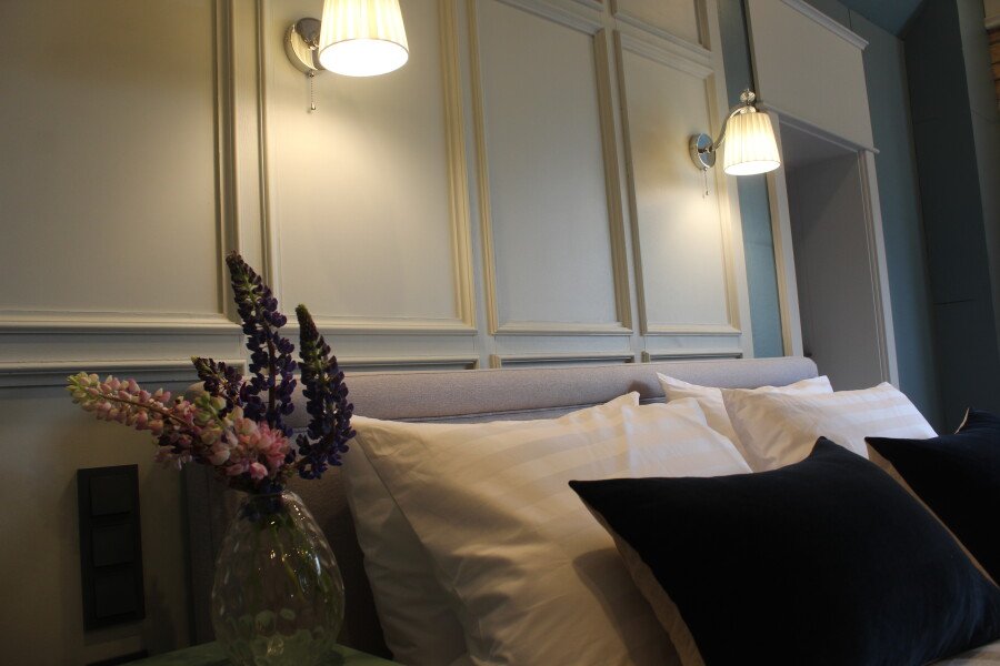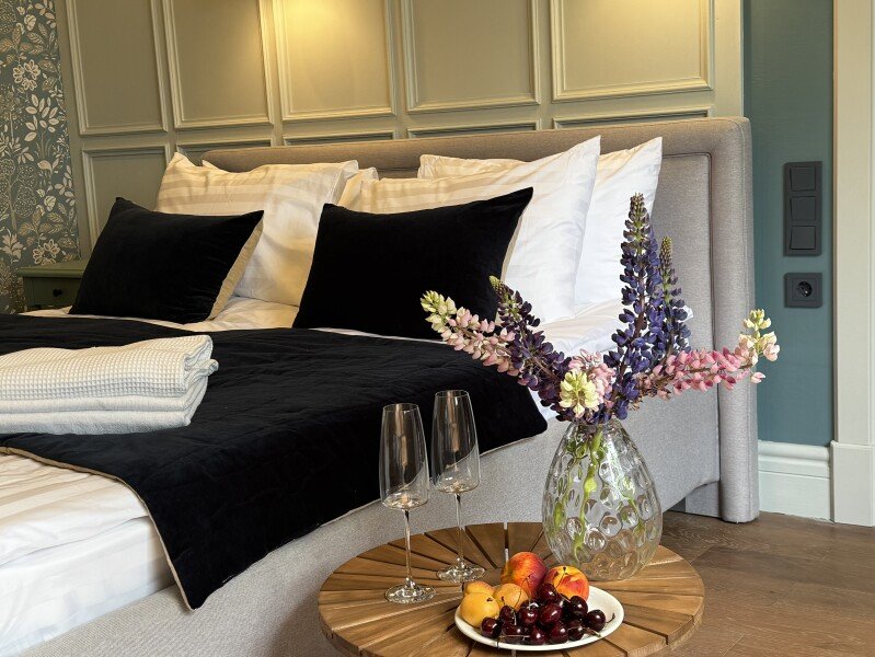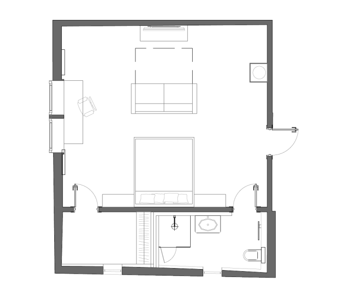 Двухместный номер на втором этаже здания. В комнате расположена кровать размера king-size с ортопедическим матрасом 180х210 см, раскладная кровать по запросу, удобное рабочее место и просторный шкаф-купе для одежды.