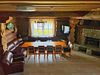 Гостиная: обеденный стол, телевизор, диван, 2 кресла, камин.