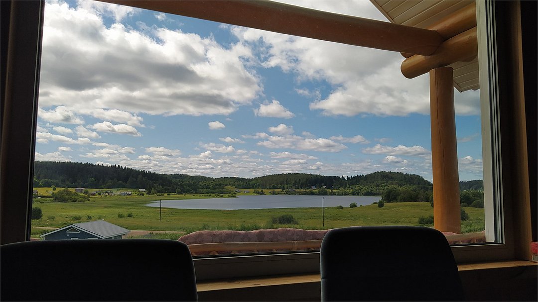 - Панорамное окно с видом на Ладожское озеро и посёлок Риеккалансаари;