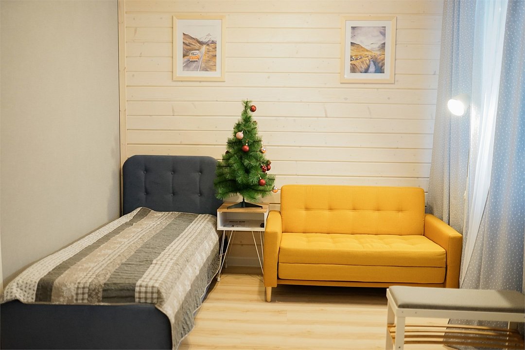 Семейный отдыхДостоинстваДумаем, что в будущем еще приедем! Взяли в аренду совсем небольшой домик, но он стал для нас самым уютным местом. Хозяин человек приветливый, показал и рассказал все, приятно. Необычно, что здесь очень много книг, причем для разных возрастов.