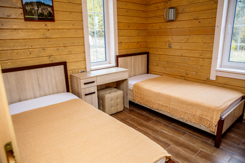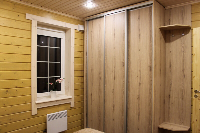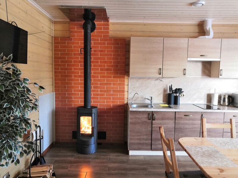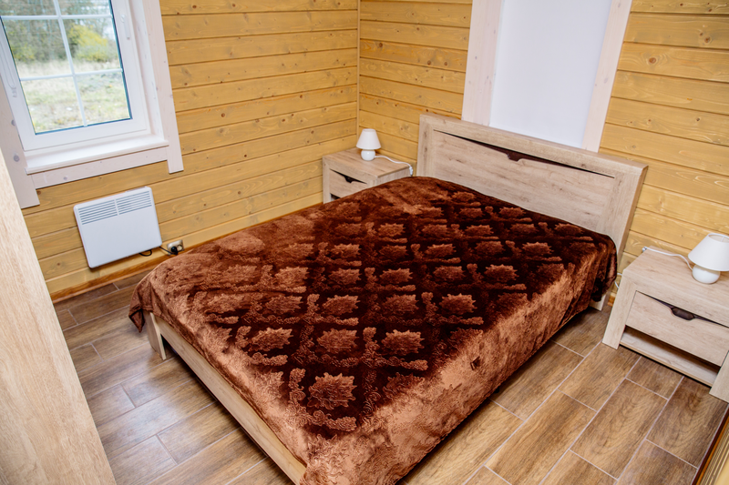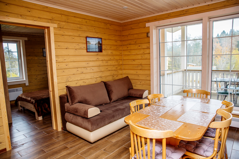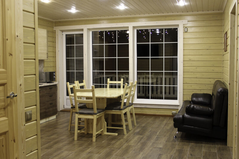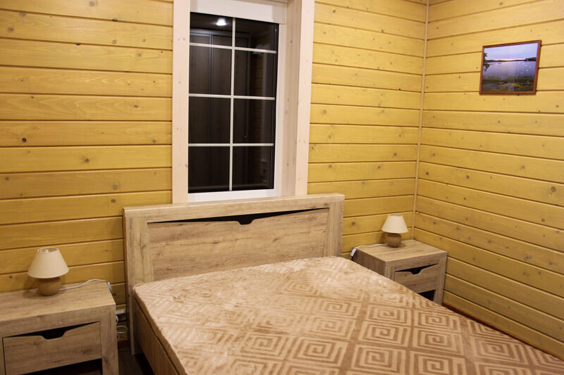 Размещение на 7 чел. площадь 60 кв. м., терраса 12 кв. м., (одна двуспальная кровать, одна односпальная кровать и двухъярусная кровать), и двуспальный раскладной диван, выход на террасу. Две изолированные спальни, кухня - гостиная со всем необходимым для комфортного проживания: холодильник, варочная панель, чайник, микроволновая печь, вся необходимая посуда и кухонные принадлежности. Посудомоечная машинка, стиральная машинка. Обеденная зона, зона отдыха с диваном и ТВ, туалет и душ с теплым полом, гигиенический душ, фен, горячая и холодная вода, полы керамогранит под дерево, печь-камин. Постельное белье и полотенца предоставляются. Утюг и гладильная доска предоставляются. Дети до 3х лет размещаются бесплатно на детской кроватки. Детская кроватка, стульчик для кормления, по запросу.