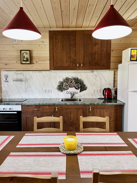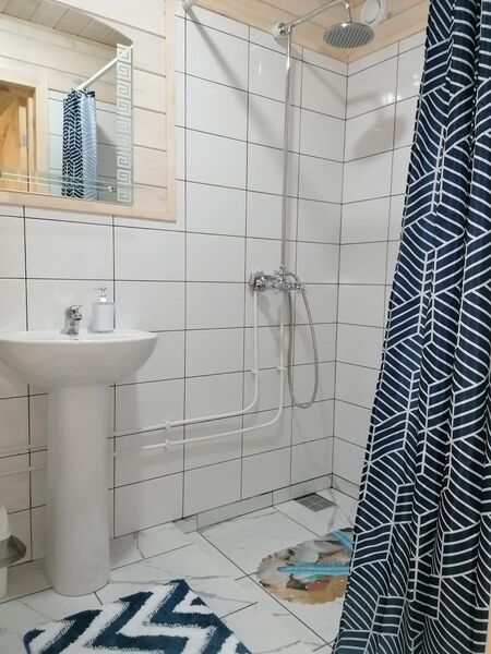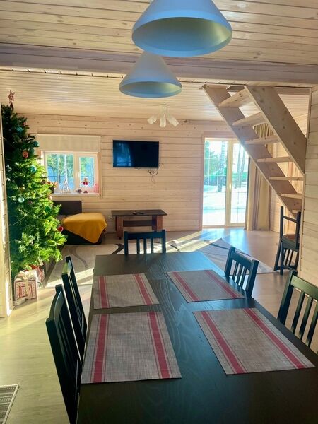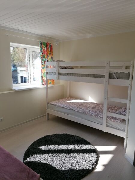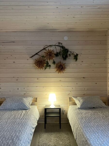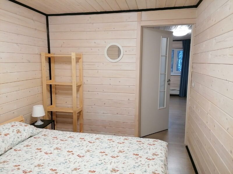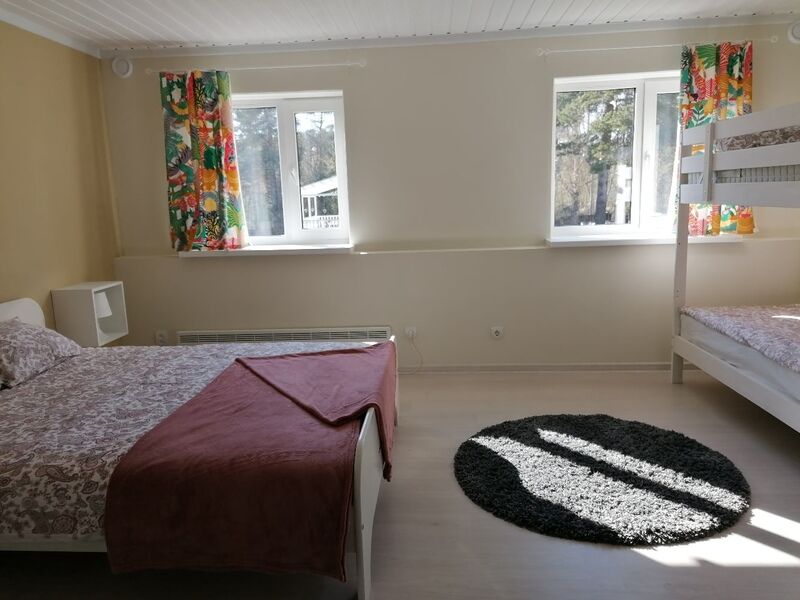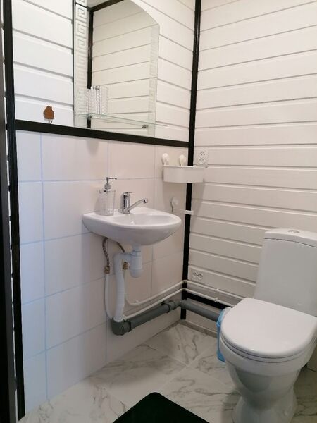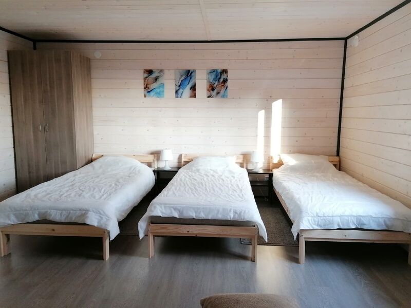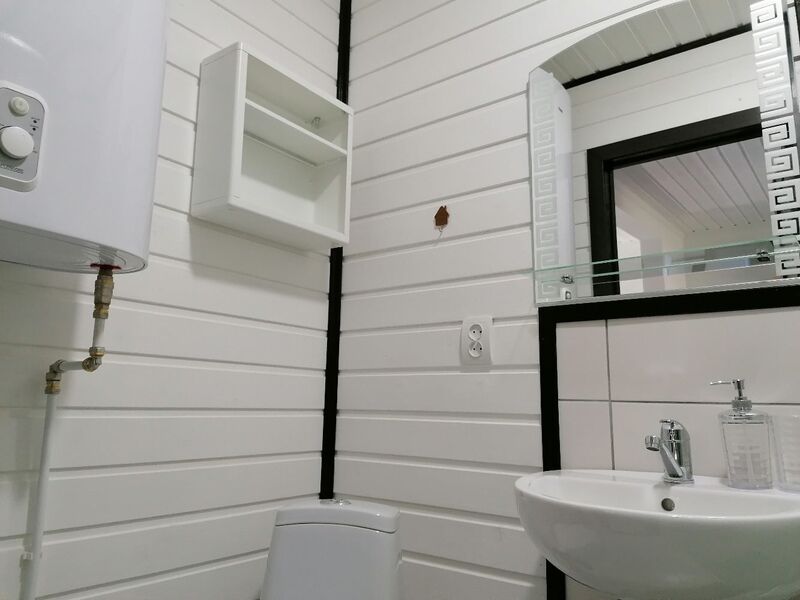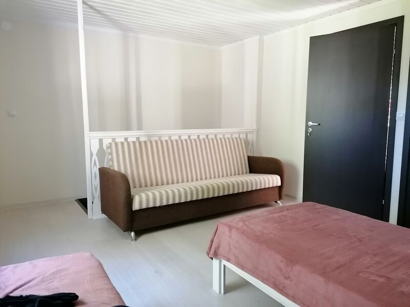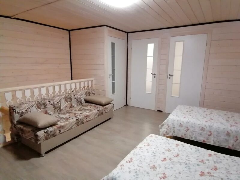 Новый светлый номер вместимостью 6 + 4 с собственной верандой, две спальни, два санузла, плиточный пол с подогревом. Имеется все для долгосрочного пребывания: