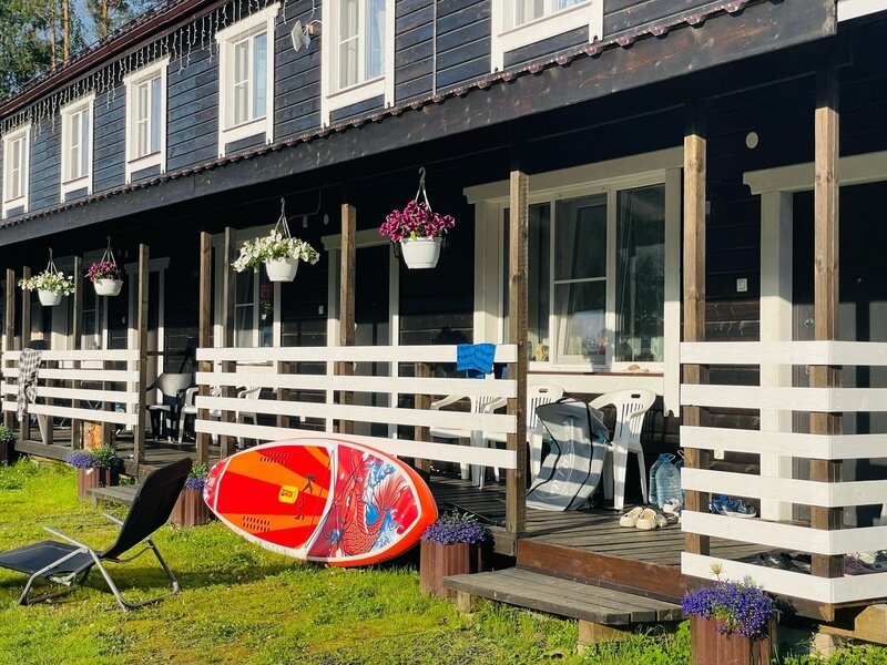 Карелия - один из красивейших уголков России. Комплекс расположен на берегу живописной реки, впадающей в ладожский залив Уксунлахти. Ладожское озеро, множество малых рек и озер изобилуют рыбой. Вас приглашают порыбачить, поохотиться, прекрасно отдохнуть и набраться сил от природы в гостевом комплексе "Сосны".