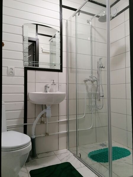 Новый светлый номер вместимостью 8 + 2 с собственной верандой, две спальни, два санузла, плиточный пол с подогревом. Имеется все для долгосрочного пребывания: