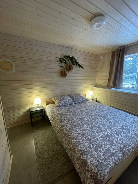 Новый светлый номер вместимостью 6 + 2 с собственной верандой, две спальни, два санузла, плиточный пол с подогревом. Имеется все для долгосрочного пребывания: