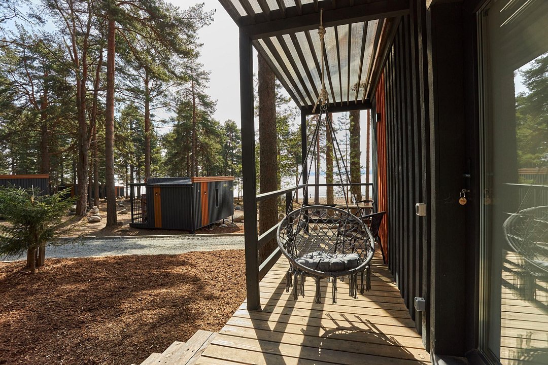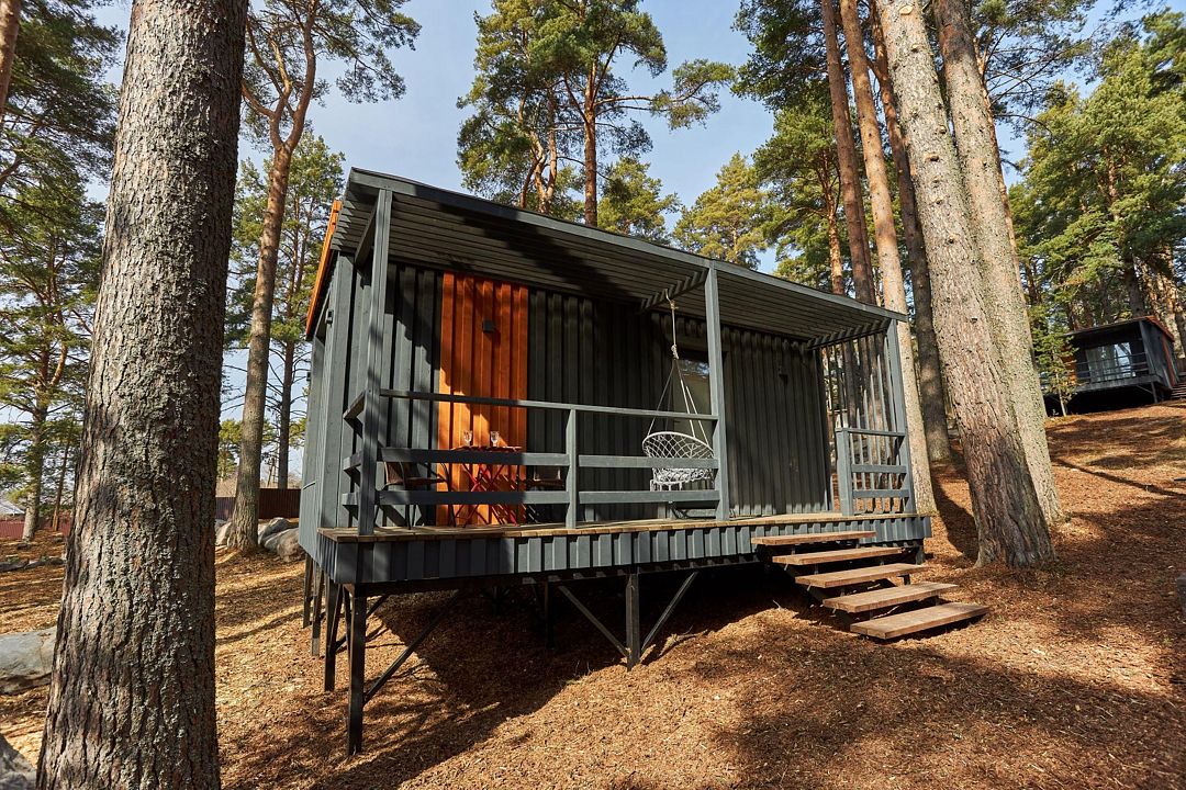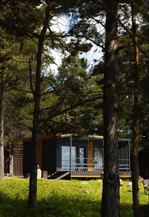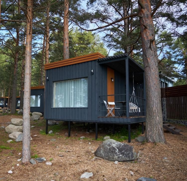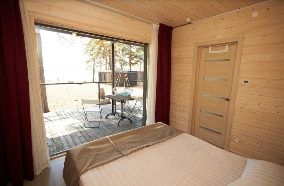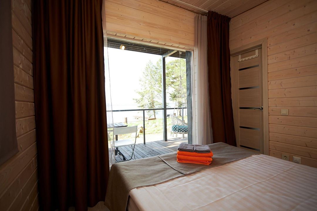Комфортный гостевой домик для двоих 18 м², с панорамным видом на Онежское озеро и сосны. Домик на второй береговой линии, до 150 метров от берега. Находится рядом с рестораном.