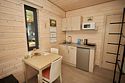 В каждом домике есть двуспальная кровать (с возможностью разделения спальных мест), кухня со всем необходимым (маленький холодильник, чайник, плита с одной конфоркой, микроволновка, посуда для приготовления и приема пищи), санузел с горячим душем и туалетом, небольшой Smart TV и WiFi, кондиционер.