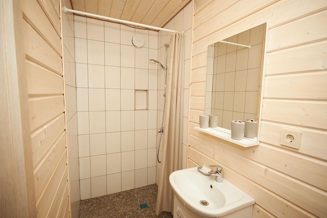 Инфраструктура: душТемпература парения: 60–70 °CНа первой и второй береговых линиях «Taleo Home» расположены уютные домики «Комфорт с сауной», которые предлагают гостям уникальную возможность отдохнуть и расслабиться. Каждый домик данной категории оборудован небольшой электрической сауной, что создает идеальные условия для отдыха после активного дня на свежем воздухе.