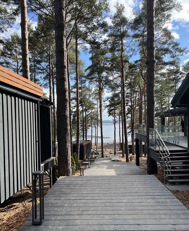 О местоположении: домики находятся на берегу Онежского озера, территория небольшая, вся в соснах, закрытая, но если выйти за не пределы уже начинается лес, ботанический сад и много экотроп, прогуляться есть где. Расположение недалеко от города, на такси от вокзала доехали за минут 25.