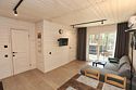 В каждом домике есть две спальни, с двуспальной кроватью (с возможностью разделения спальных мест); гостиная с диваном, на котором возможно разместить еще до двух гостей, за доплату; кухня со всем необходимым (холодильник, чайник, плита с одной конфоркой, микроволновка, посуда для приготовления и приема пищи); санузел с горячим душем и туалетом; Smart TV и WiFi; кондиционер.