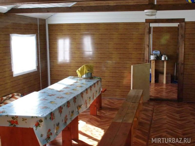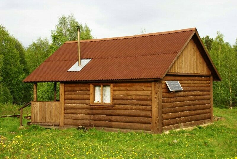 - Проживание в домике (сруб с печным отоплением и освещением от солнечных батарей);