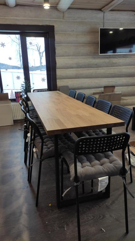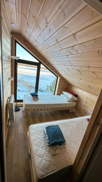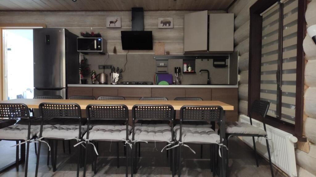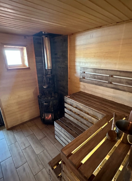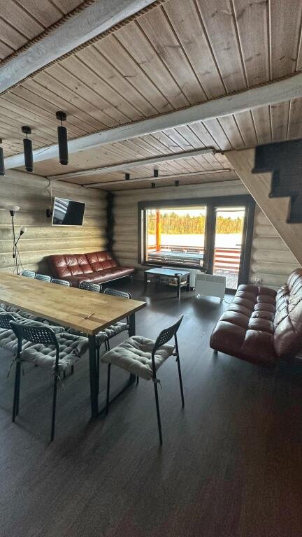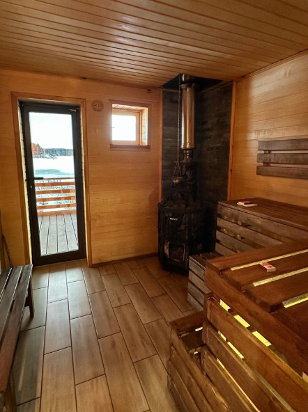 Дом со всеми удобствами для компании до 12 человек. На первом этаже: кухня, гостиная, столовая. санузел, баня на дровах. На втором этаже располагаются 4 спальни с односпальными кроватями.